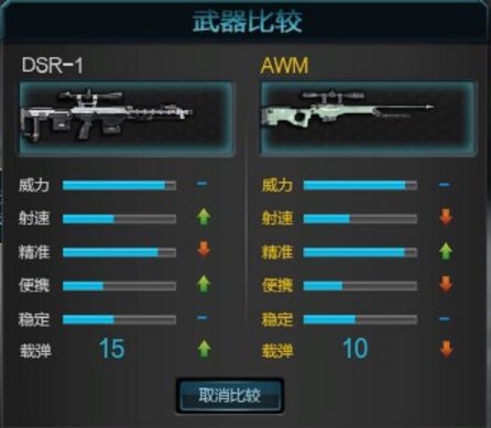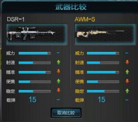 DSR-1拥有更好的射速和便携能力,那么DSR-1将更适合进行游走进攻。而且从这个特性我们也能够看出,这把枪在单发精准上确实无法与AWM-S相比。