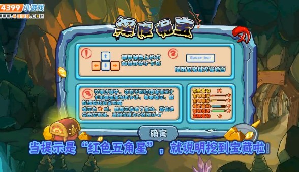 按住方向键,使自己的卡布形象移动,然后找到自己觉得有宝藏的位置按住“空格键”开挖。每挖一次,都会有提示哦,提示分两种状态。