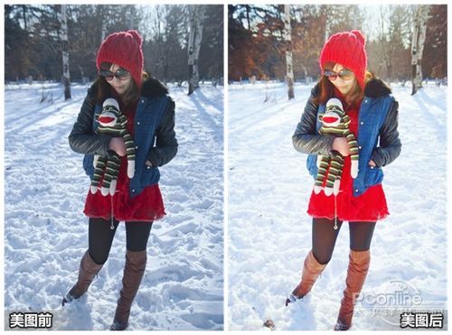大家可以看到美化过后的雪景照看起来更增添了一份明媚哦,赶紧给你的雪景照美化去吧!