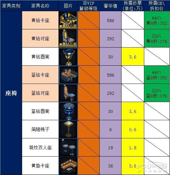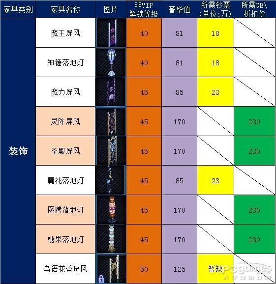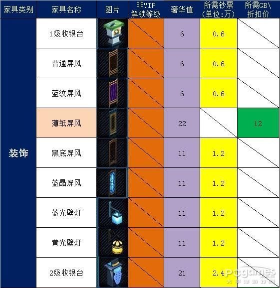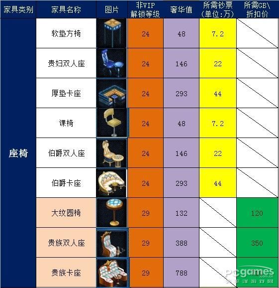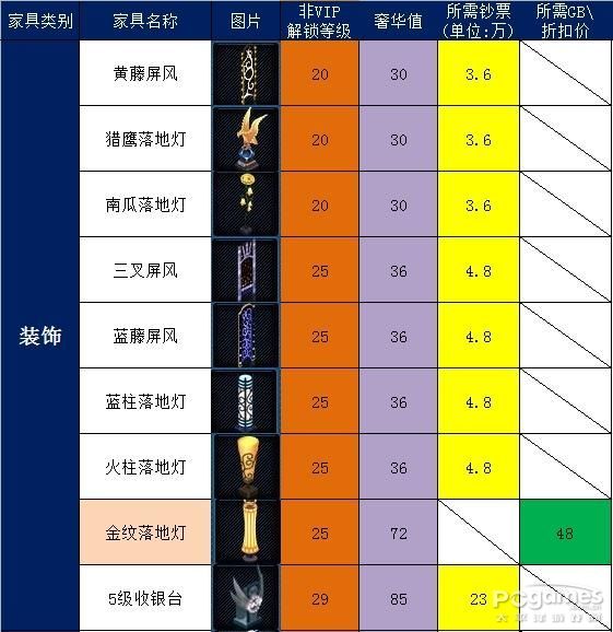1、表中的是非VIP的家具解锁等级。 如果是VIP请根据自己的VIP等级,减去金币家具所降低购买的对应等级,即为当前所需的购买等级