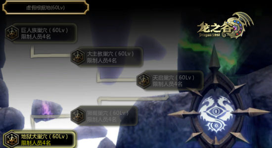 进入时空庭院后,按M键(默认)后在右上角出现的红门便是五个巢穴所处的位置:虚假根据地(60Lv)。