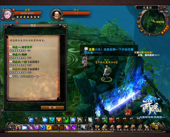 3、进入副本后,由队长在NPC“悟空”处选择难度,开始挑战伏魔顶。如果玩家开启伏魔等级越高的话,那么增怪物的强度也就越高,所以请大家一定要根据自己队伍的整体实力进行选择哦。