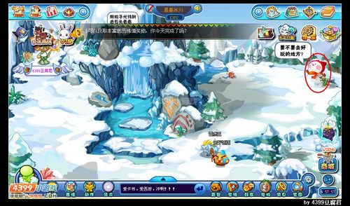 寒冰谷的入口是在【晨暮冰川】哟!卡布们需要点击这个带红帽的雪人,就可以进入【寒冰谷】啦!