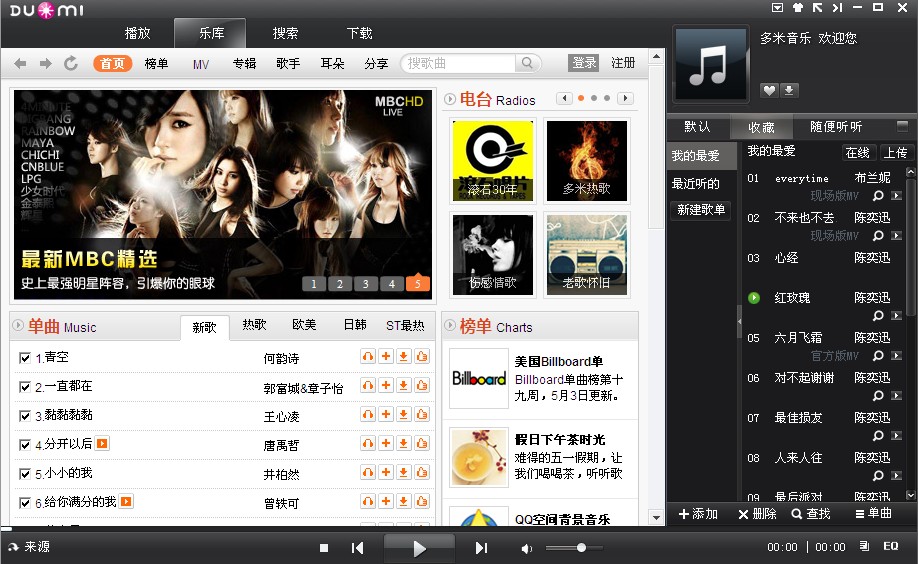 精心编辑的各种电台,滚石30年、多米热歌、songtaste、粤语、华语、欧美、轻音乐……基本上你能想得到的,多米电台都能为你提供!随便打开一个电台,基本上能够完成你一天的听歌任务了。最主要的一点是:多米电台方便了很多“懒人”,不用专门去找歌,就能听到最好的音乐。