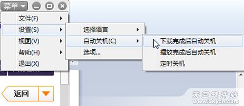 新版:风行 2.4 支持三大关机方式:下载后关机、播放完关机、定时关机(图5),彻底实现智能关机,可以根据自己的需要应用于各种不同场合。