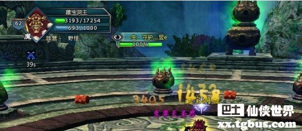 打开藏宝图会直接传送到藏宝洞府中,稍次点也可以出现一个小鬼怪,杀死后掉落宝箱钥匙,运气最差的应该是惊动上古魔神,可以去进行封魔。
