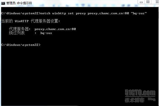 通过查阅资料,发现原来WSUS客户端在访问WSUS服务器时,也是要调用Winhttp代理进行通讯的。由于WSUS客户机和WSUS服务器同在TMG的内网,因此WSUS客户机应该直接访问WSUS服务器,根本不应该客户机先访问到TMG服务器,然后再通过TMG服务器访问WSUS服务器!找到问题之后,怎么解决呢?其实解决方法也很简单,在netsh Winhttp中设置旁路列表,告诉Winhttp代理,访问WSUS服务器不用经过Winhttp代理,这样就可以了。例如WSUS服务器是hq-sus,那么我们就可以在客户机上输入如下图所示命令:Netsh Winhttp set proxy proxy.chamc.com.cn:80 “hq-sus”。这条指令就是通知Winhttp代理,访问hq-sus服务器可以直接访问,不用经过Winhttp代理了。如果有内网其他的服务器要排除,可以用分号隔开,具体语法可以参考http://technet.microsoft.com/en-us/library/cc731131%28WS.10%29.aspx。