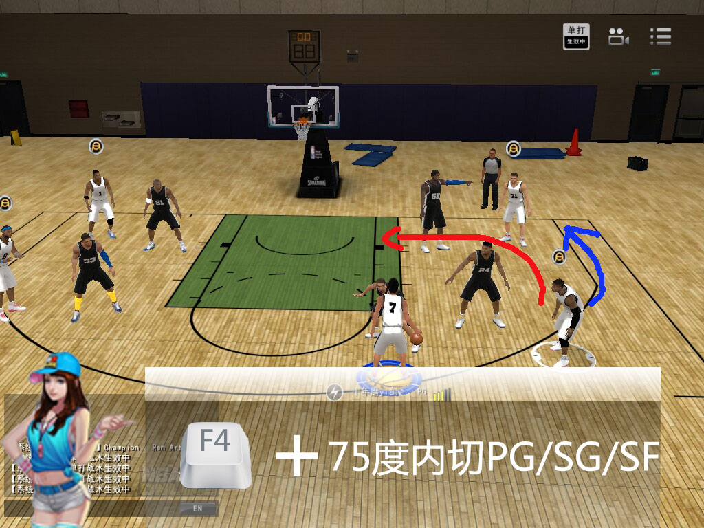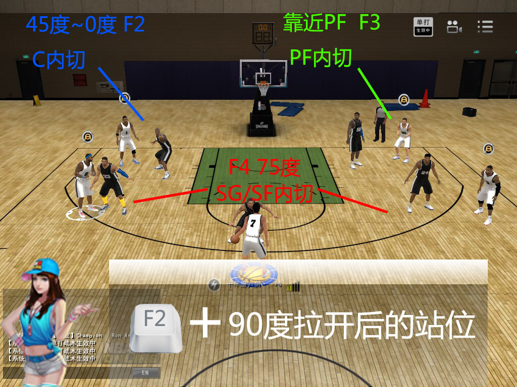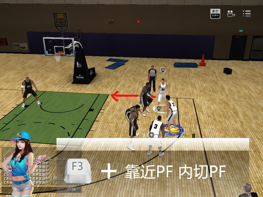 内切PF(PF也能用F2切,但前提是身前没防守队员)