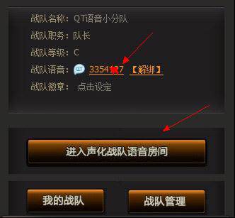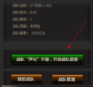 第一步:在战队管理栏目,点击绿色按钮“激活战队语音房间” (如上图)