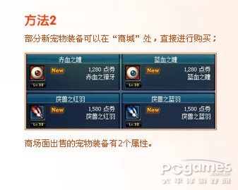 DNF宠物装备获取方法二:部分宠物装备在商城购买,商城出售的宠物装备有2个属性,对应物理系和法术系的不同职业。