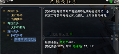 顺便说一下被师徒任务的所有怪打死都不掉经验,可以利用回城。当徒弟做完第四个任务的时候师傅就会自动得到任务物品哦!