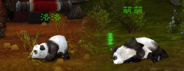 大家到时可以在暴风城的传送区附近找到“萌萌”,而“洛洛”则位于在奥格瑞玛荣誉谷。怎么样,是不是和我们认养的两只熊猫宝宝一样憨态可掬?萌萌和洛洛可不只是你想象的这么简单,如果你对它们表达你的喜爱(/Love),轻拍(/Pat)或是拥抱(/Hug)它们的话,你还会得到来自萌萌和洛洛的礼物——[魔力竹笋]。