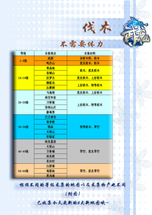 10-19级:寒晶池、青城山、还梦谷、洄落岛、达摩洞