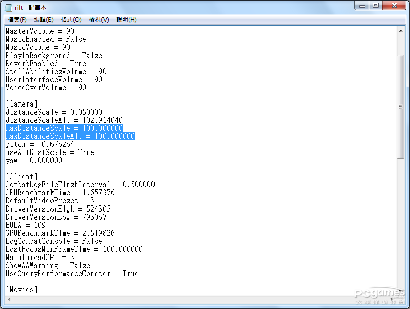 进入游戏最远也只有100,把Rift.Config档设定成唯读也一样。