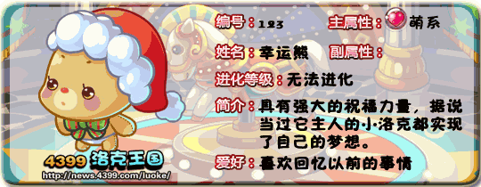 洛克王国里,有一只叫做幸运熊的宠物,传说中拥有它的小洛克都会拥有令人羡慕的好运气,不过现在还没办法获得它哦,但是我们可以提前来看看它的爆料哦!