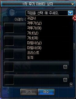 从上到下依次为鬼剑士、男格斗、女格斗、男枪、女枪、男法、女法、大叔、盗贼。