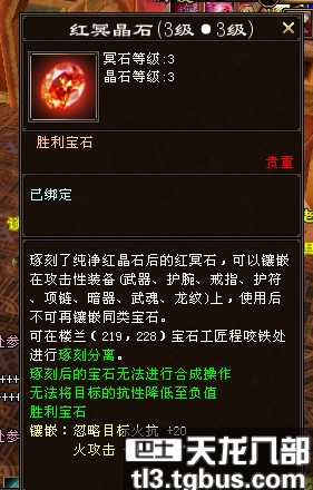 合成,冥晶石需要四颗(7级以上3颗)已雕琢的相同的属性攻击宝石与一颗属性一直的忽略,再加上一个宝石琢刻符合成。需要说的一点是现在在封测服务器世外龙园仅仅可以买一个宝石琢刻符是在至尊珠玑阁出售120YB。