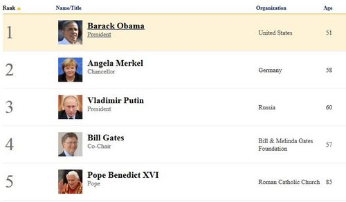 下面是《福布斯》2012全球最有影响力人物榜单前5名: