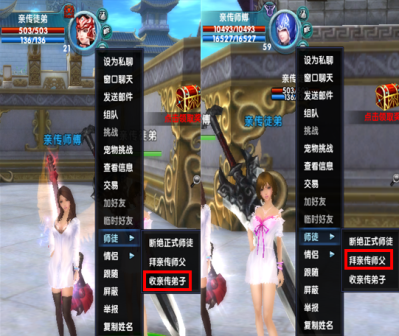 当然,如果玩家双方已经是普通的师徒关系,希望将对方收为自己的亲传弟子或拜其为自己的亲传师父,同样可以通过简单的操作来完成。