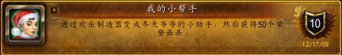 看到奥格瑞玛或者铁炉堡银行前的圣诞树了么?看见穿着大红棉衣的冬天爷爷了么?当然,还有那些绿色皮肤的来自烟林农场的地精商人,快去和他们打个招呼吧。