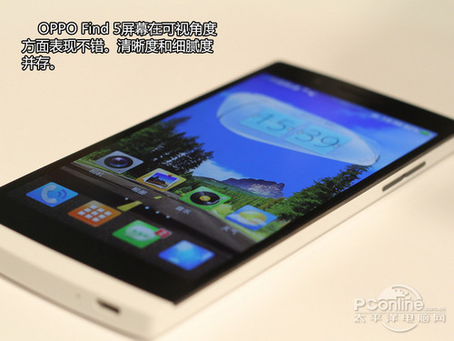 OPPO Find 5是第一款国产手机中采用1080p屏幕分辨率的手机,5英寸的屏幕尺寸令其屏幕像素密度PPI达到441,理论上已经超越了人眼可识别的范围值。不过按照OPPO的说法,人在不同焦距下看屏幕的时候,可识别的PPI的极限为429。