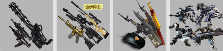 加特林 双手Uzi、金牌网吧武器 M95大炮、雷蛇鼠标 全套AK、五大新机甲全免费。