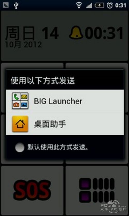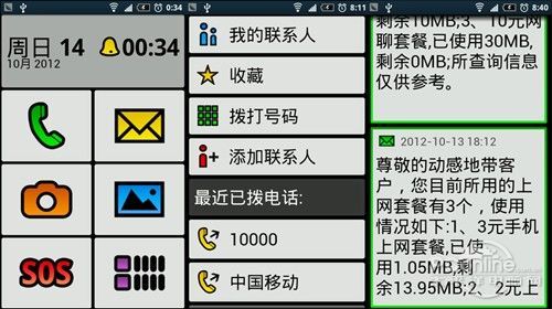 大字体是Big Launcher的一大特点,不光是一级按钮,就连其下的拨号、短信等也都是大字体+大图标。当然大家也可以根据自己的需要随时调整界面内的文字大小,非常的方便哦!