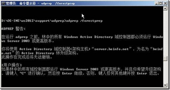 1、运行Windows Server 2012的ADPREP工具更新
