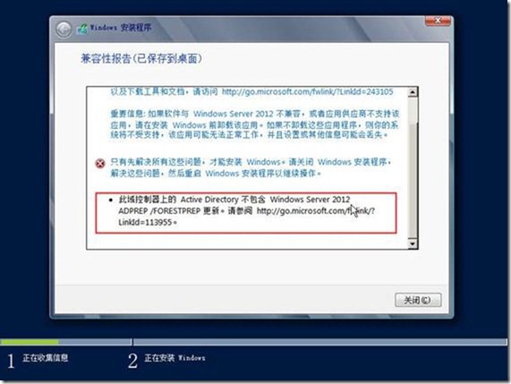 (8)稍后是“兼容性报名”,如果你没有运行adprep /forestprep或adprep /domainprep都会弹出错误提示,如下图所示: