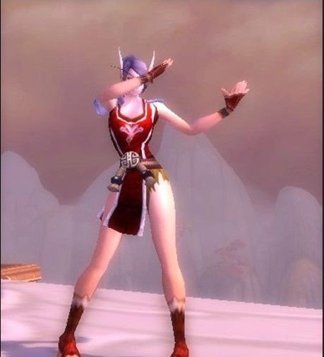 首先关键是这个红色战袍:有公会的自己改造,不然就火金派熊猫人的战袍 对,红彤彤那个。