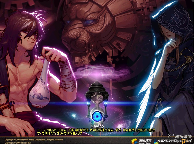 可以看出,背景图片即是西岚与神秘女人(艾丽丝),还有一个巨大的沙漏,这代表着80级【时空之门】的主线剧情。