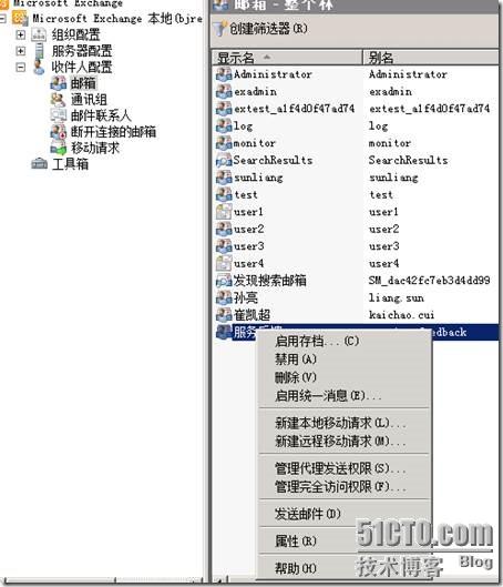 首先是打开EMC管理控制台,展开“收件人配置”—“邮箱”节点,在需要被管理的账户上点击右键,然后选择“管理完全访问权限”然后添加相应的授权用户即可。