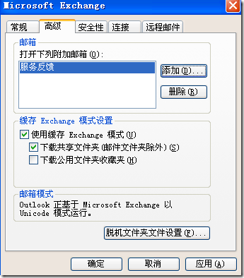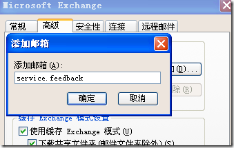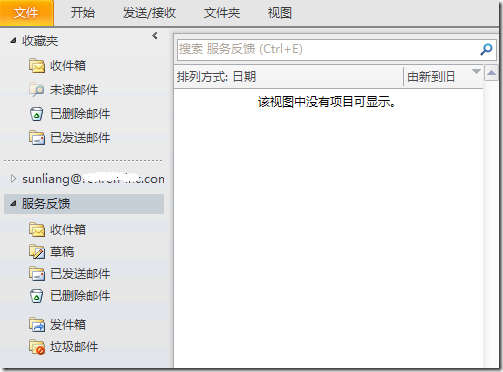 对于Otlook2010,当用户具有对服务反馈账号的管理权限后,在他的outlook中就会自动显示该账号。