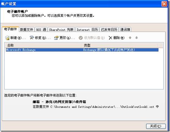 完成后,即可在Otlook2007中看到新添加的账户了,并对此账户具有完全管理权限。