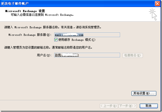 打开Microsoft Exchange设置向导,点击右下角的“其他设置”