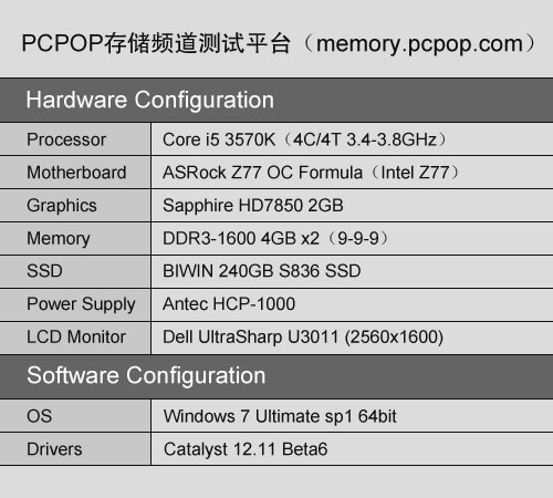 在测试平台方面,为了不让系统中其它配件成为影响移动硬盘发挥性能的瓶颈,所有配件均使用高性能产品,并且在Win 7系统下测试。