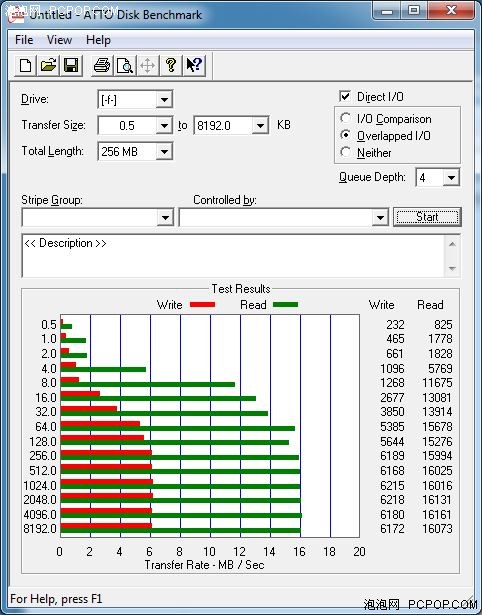 ATTO Disk bench32测试下,卡巴斯基杀毒U盘的读取速度为16.07MB/s,写入速度为6.17MB/s。