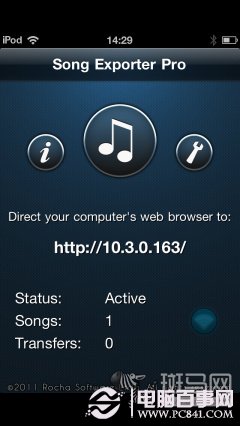 Song Exporter Pro(音乐导出器)一款能够让用户无不通过iTunes将音乐无线共享给PC的应用。这款应用能够读取iOS设备中的音乐库,并将用户选取的音乐变为共享状态,在同一局域网下的PC可以通过访问应用提供的IP地址,播放或下载共享的音乐。下图为Song Exporter Pro使用界面(不支持iPhone5分辨率):