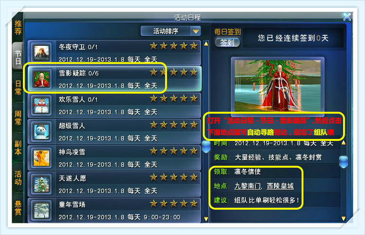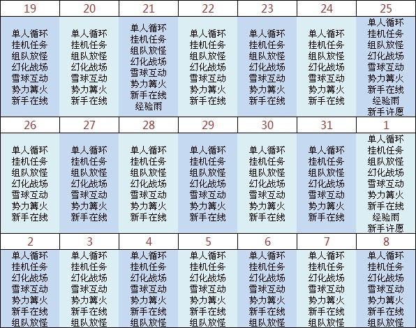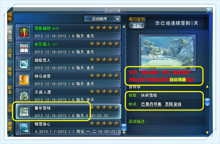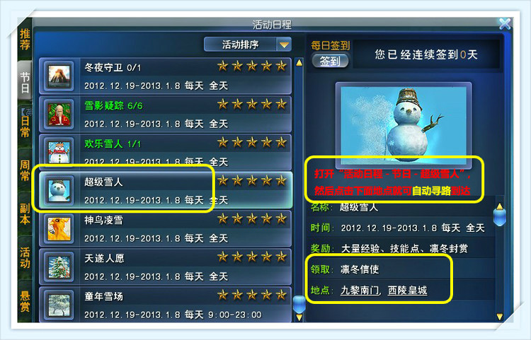 凛冬活动日程表(2012.12.19~2013.1.8)