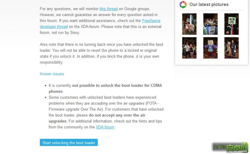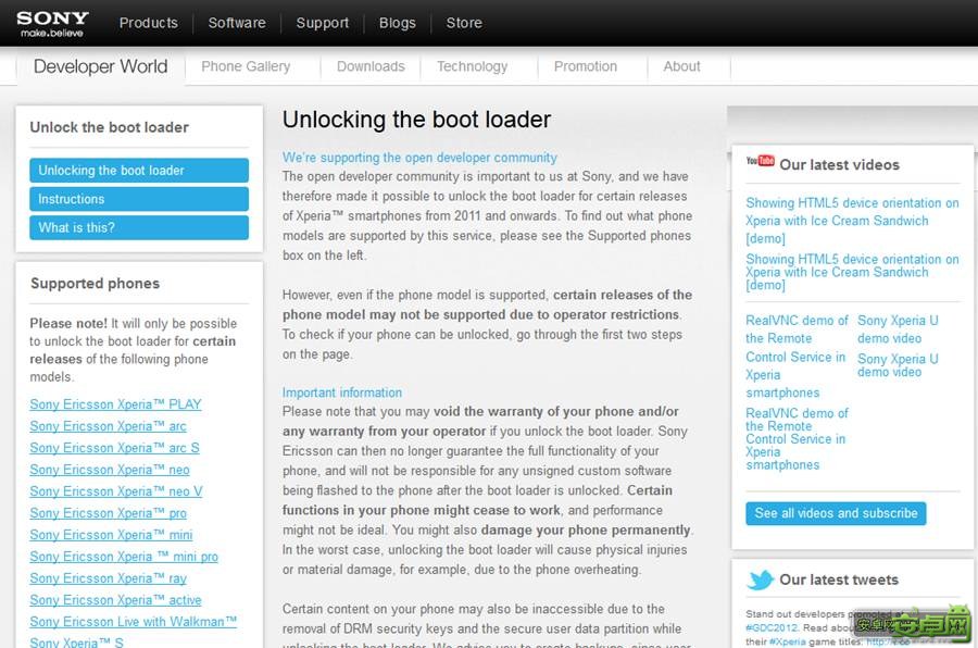 1.打开索尼爱立信官方解锁网站 ,页面如图: