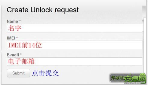 6.在打开的页面中,输入以下信息,输入完成并点击“Submit"提交,如图:
