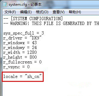 在文件的最后一行 添加 locale = "zh_cn" (纯英文,红色部分)