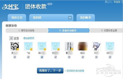 等创建团队成功之后,就点击“添加新团员”啦。看哪些同事准备一起AA制的就添加进去吧!大家可以直接从联系人中添加团友或者直接输入对方的支付宝账号哦~