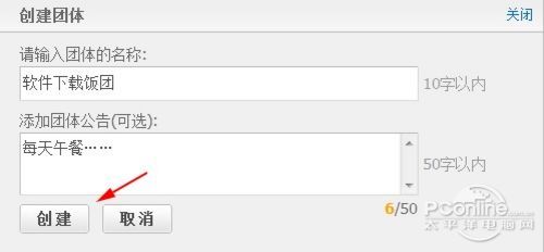 大家先创建团体,可以建个很酷的名字哦,然后再添加团体公告,譬如今天吃什么啦之类的!(*^__^*) 嘻嘻……