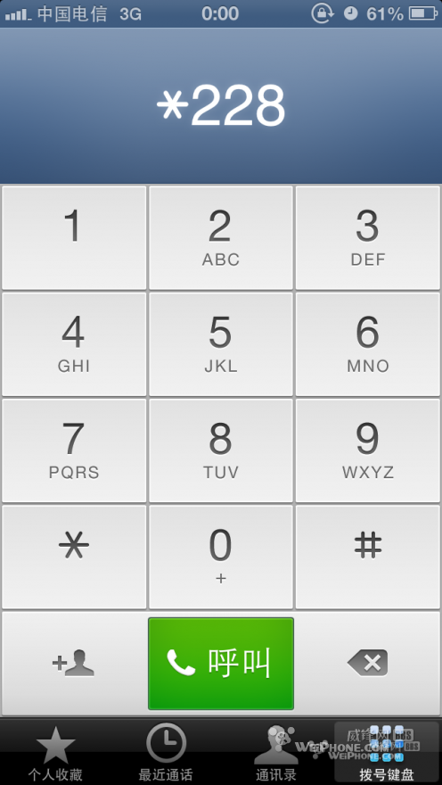 手机立马进拨号软件按*228然后点拨号键会搜索到电信信号: