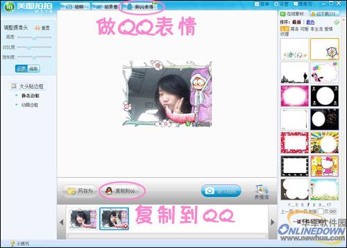 操作方法和拍照其实是一样的,选择“做QQ表情”功能,再单击拍照键就可以制作表情了。当然也可以添加各种可爱的边框啦!