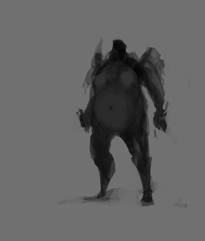 ps绘制动漫人物步骤一:用剪影法塑造基本大型,如下图所示: