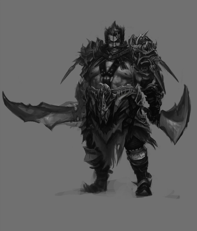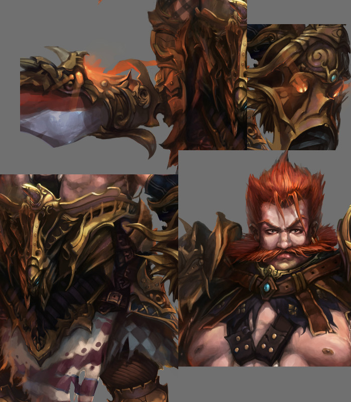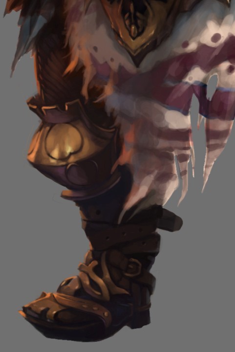 ps绘制动漫人物步骤六:质感贴图———利用高光来进行各种质感的表达,以及形体体积关系的强化。纹理和纹身的贴图运用,如下图所示: