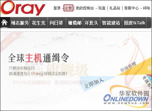 访问www.oray.com(向日葵官网),点击页面右上方的【注册】;