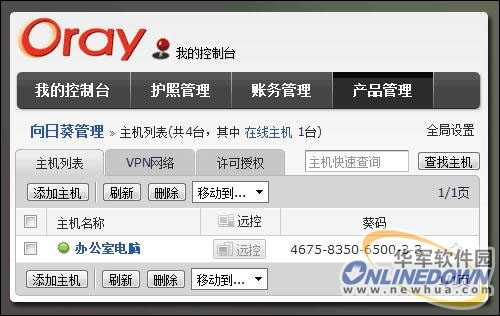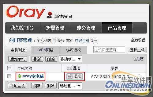 主控方进入向日葵官网访问www.oray.com,登录护照,打开“我的控制台”-“产品管理”-“向日葵管理”,被控端主机将会显示在主机列表中,点击“远控”便可以对被控端主机进行远程控制了。